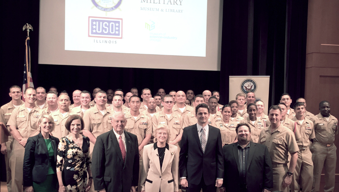 The first of its kind in the nation, created by the USO of Illinois, the program connects the American public with future U.S. Navy chief petty officers in a mutually beneficial partnership between the American public, military learning institutions and the naval population at the nation’s only Navy boot camp—Naval Station Great Lakes, just north of Chicago.