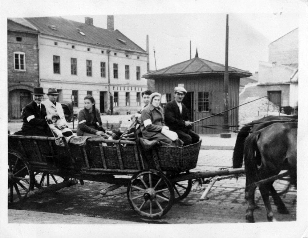 - "CRACOW, POLAND -- The misery of the Poles under the iron heel of the German master is well-nigh unbearable, but, bad as their lot, the lot of the Jews in Poland is even worse. In the new Polish capital of Cracow, the Germans have made life especially difficult for Jews, because the Germans claim Cracow is an old German town. Here is a "Jew wagon" which is evacuating a Jewish family from Cracow. Note that the Jews wear arm bands identifying them. This is an uncensored picture."