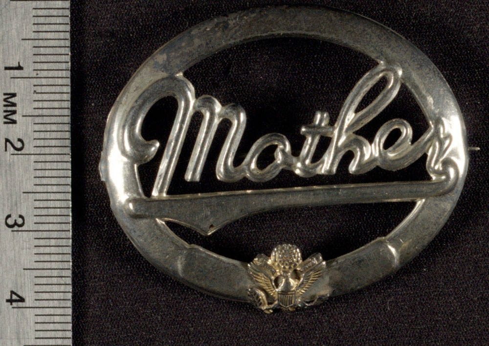 Sweetheart brooch with word "Mother" and U.S. Seal, sterling
