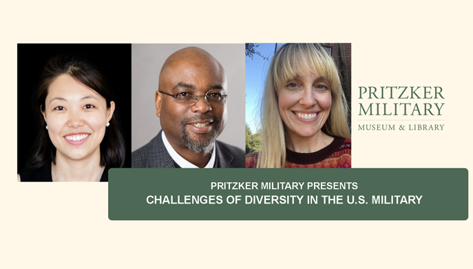 Join us on May 17 for a conversation on diversity and inclusion in U.S. military institutions. Dr. Matthew S. Muehlbauer, Chief Military Historian of the Pritzker Military Museum & Library, will moderate a panel with featured guests Dr. Robert Jefferson of the University of New Mexico, attorney Scarlett Kim of the American Civil Liberties Union, and Dr. Heather Stur of the University of Southern Mississippi. They will discuss both the historical context as well as contemporary issues that shape the challenges of incorporating minorities, women, and immigrants into America’s armed forces.
