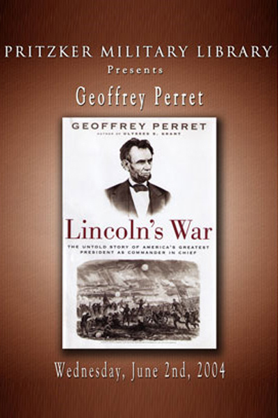 Wednesday, June 2nd, 2004, Geoffrey Perret visited the library to talk about his latest book, Lincoln's War: The Untold Story of America 's Greatest President as Commander in Chief. Geoffrey Perret received his undergraduate degree from the University of Southern California, was awarded a graduate fellowship at Harvard and studied law at the University of California at Berkeley. Mr. Perret has written There's a War to Be Won, Winged Victory, Old Soldiers Never Die: The Life of Douglas MacArthur, Ulysses S. Grant, Eisenhower and JACK: A Life Like No Other. Mr. Perret has also been a consultant on several televised historical documentaries.