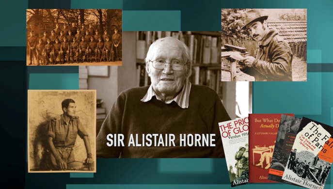 Sir Alistair Horne, was born in 1925 and educated at Le Rosey school in Switzerland. As a teenager early in World War II, Horne was sent to live in the United States. He attended Millbrook School, where he befriended William F. Buckley, Jr., who remained a lifelong friend. He graduated from Jesus College, Cambridge as a Master of Arts. Horne served in the Royal Air Force in 1943–44 and later as an officer in the Coldstream Guards from 1944 to 1947.